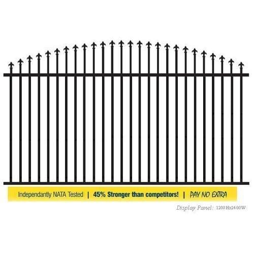 *Pool compliant **1.5m requires midrail 300mm from top for pool compliance - sold seperately. ***Includes a midrail 600mm from bottom. For pool compliance max panel width is 3.0m. Fluer de lis spears used as standard, other spears available at extra cost. Standard arch rise is 300mm above ordered panel height. Tolerance on all measurements +/-5mm