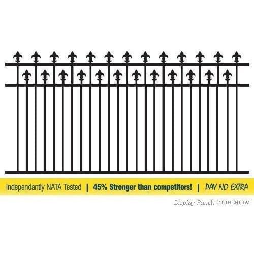 Jade Style fencing needs to be 1370mm High to be pool compliant **1.5m requires midrail 300mm from top for pool compliance - sold seperately. ***Includes a midrail 600mm from bottom. For pool compliance max panel width is 3.0m. Fluer de lis spears used as standard, other spears available at extra cost. Tolerance on all measurements +/-5mm