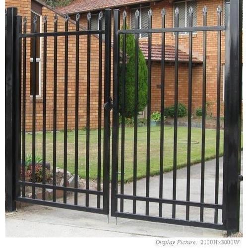 Rail 40x40x1.5mm SHS Punched Rail, Picket 25x25x1.2mm SHS. Gap between pickets approx 112mm. We recommend using 65x65x2.5 posts 900mm in the ground for panels and 100x100x3 posts 900 in the ground for gates. Aluminium Security fencing is NOT pool compliant